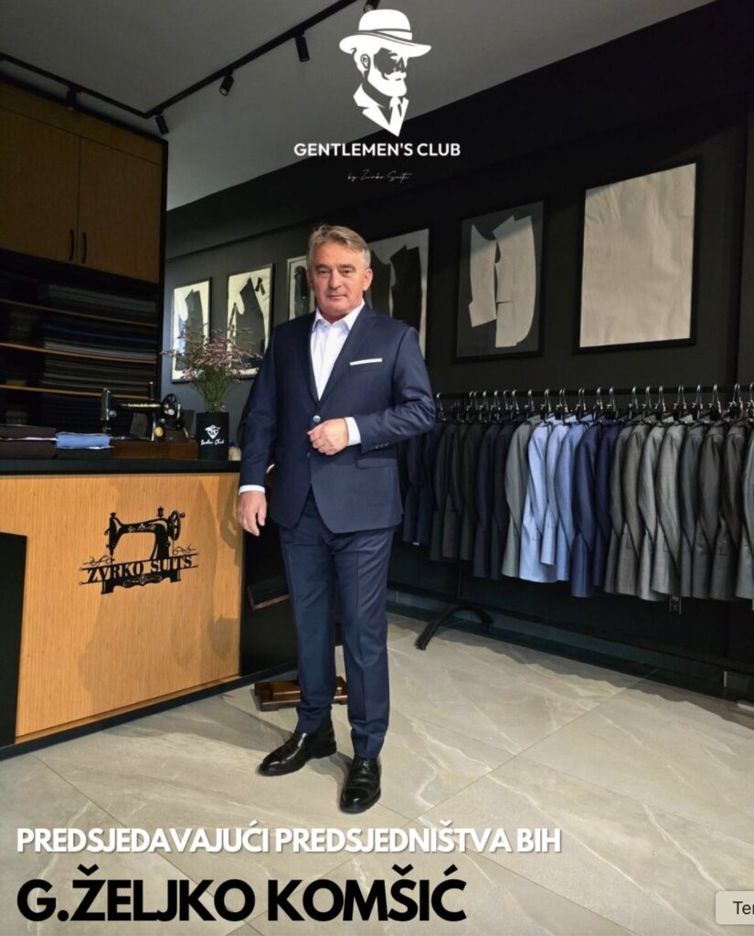Dok Bosna i Hercegovina prolazi kroz duboke političke krize, napade na ustavni poredak, ekonomske potrese i opću društvenu nestabilnost, član Predsjedništva BiH Željko Komšić bavi se reklamiranjem odijela. Vjerovatno se rijetko gdje u savremenoj političkoj praksi može naći primjer da aktuelni šef države postaje promotivno lice modne marke, i to u trenucima kada zemlja prolazi kroz najdramatičnije političke i ekonomske izazove.